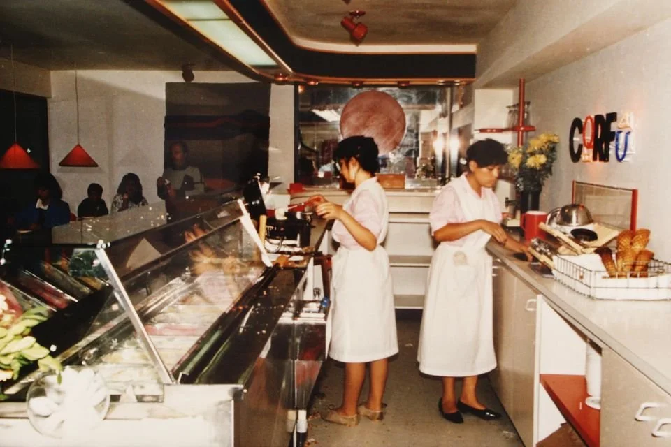 Al comienzo ellos mismos elaboraban los helados, atendían a los clientes y administraban la pequeña fábrica y almacén ubicados, hasta ahora, en la calle Portugal. Corfú no era solo una heladería, era un lugar de encuentro donde se reunían los amigos.